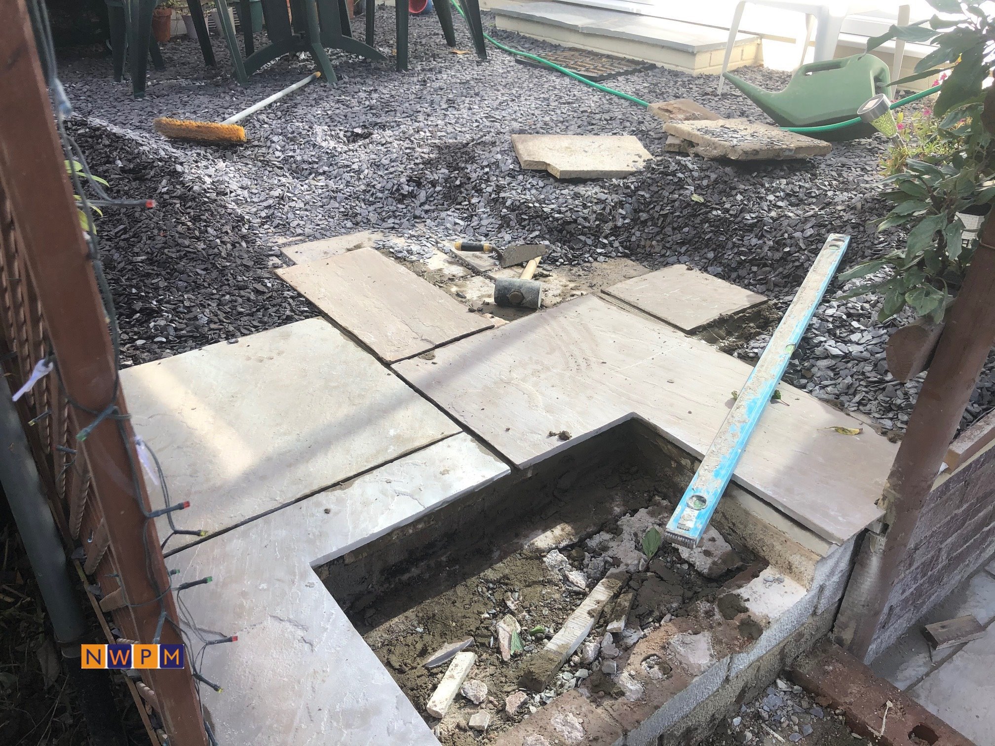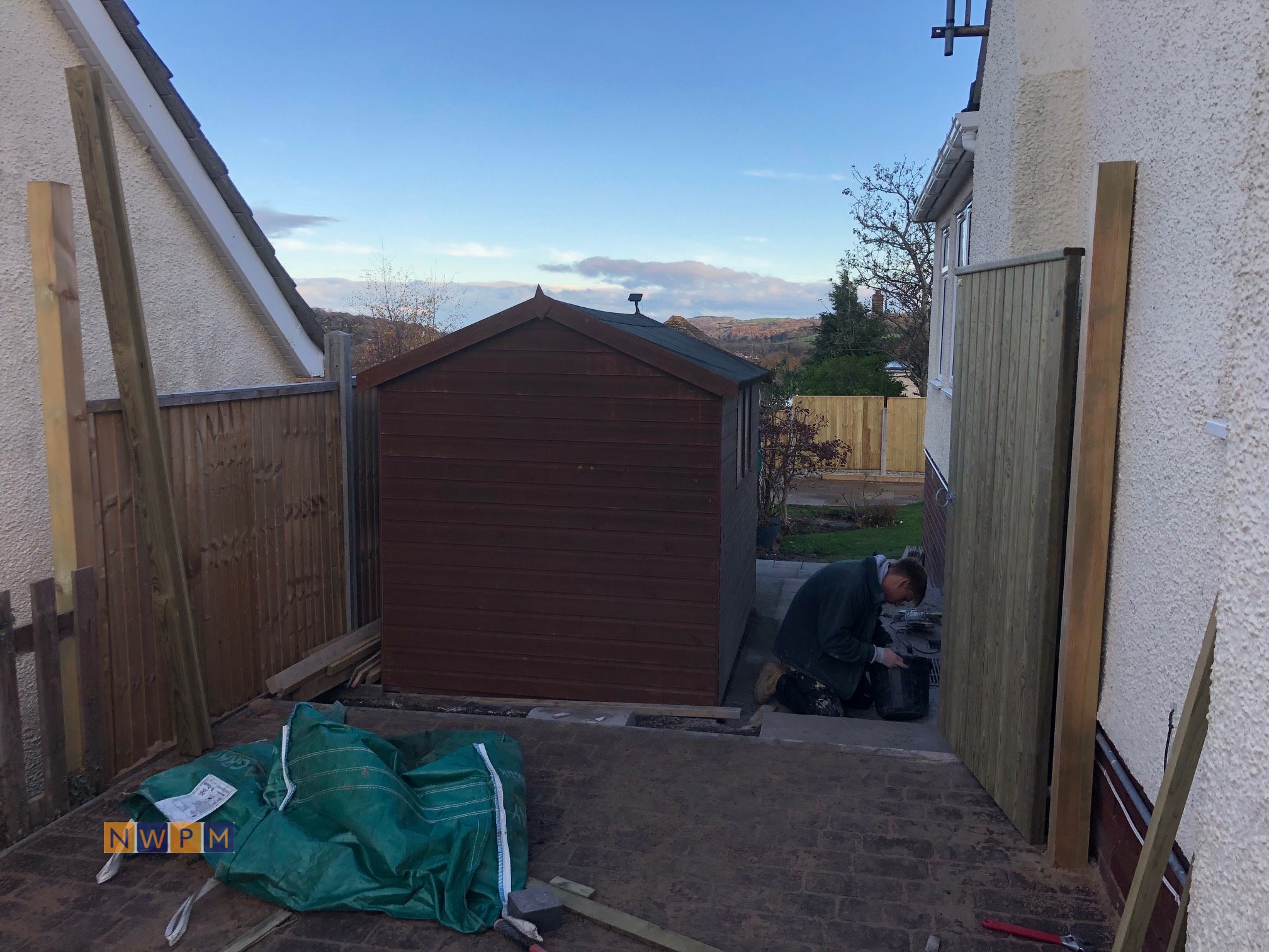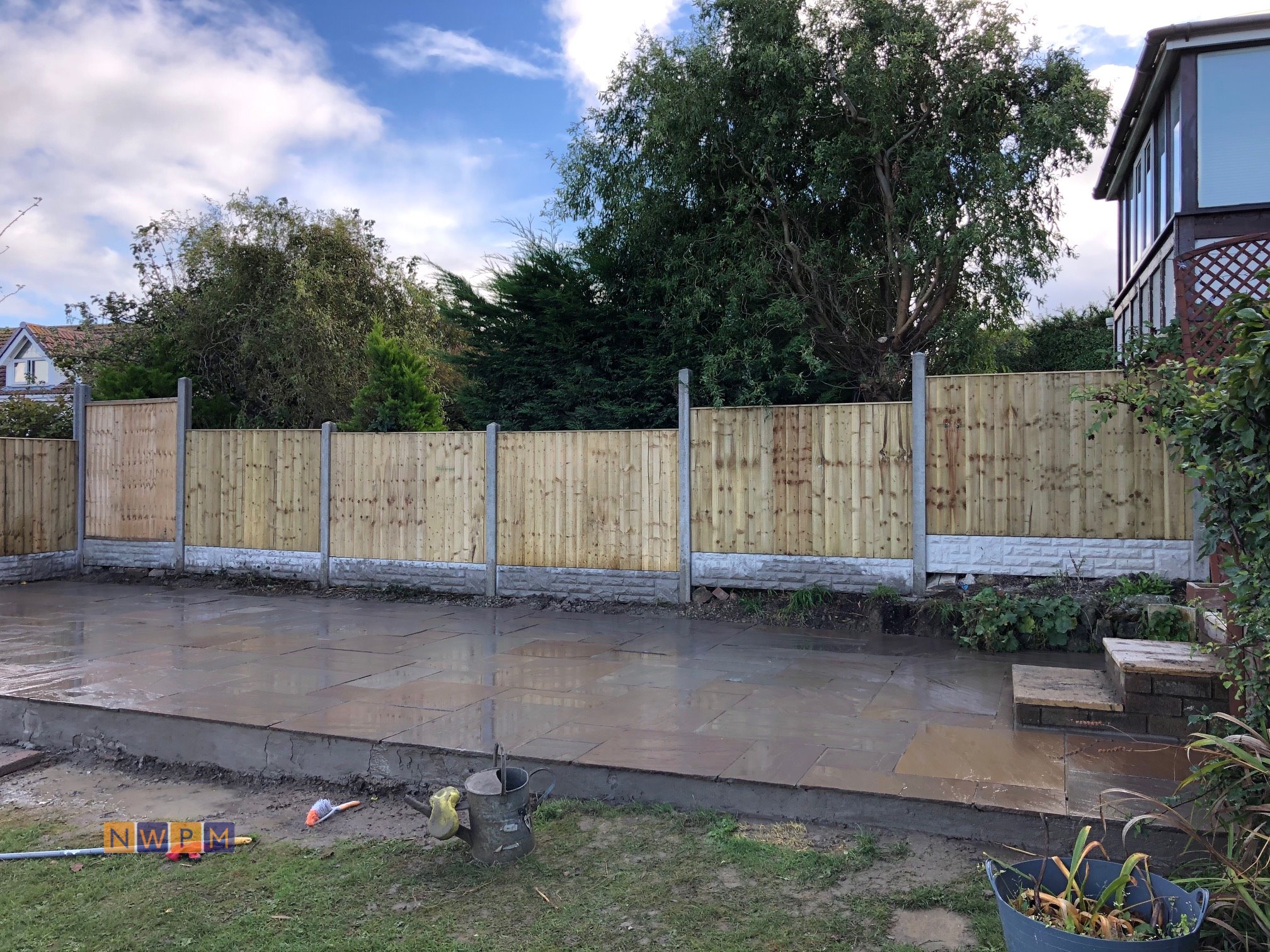 A job that needed everything in Gloucester, Fencing, Patios, Steps, Roof Tiles, Block Wall, Block Paving and Electrics.
