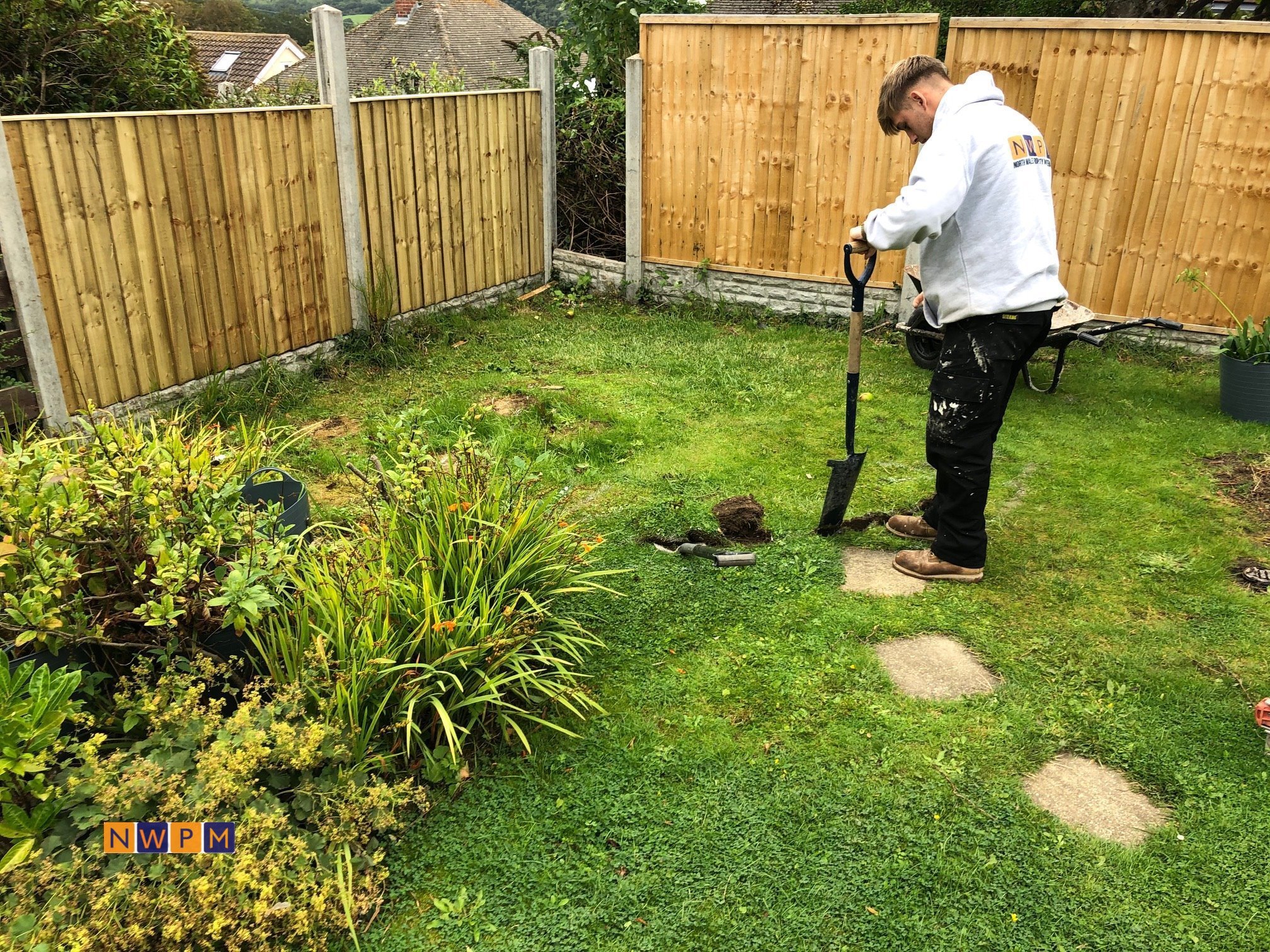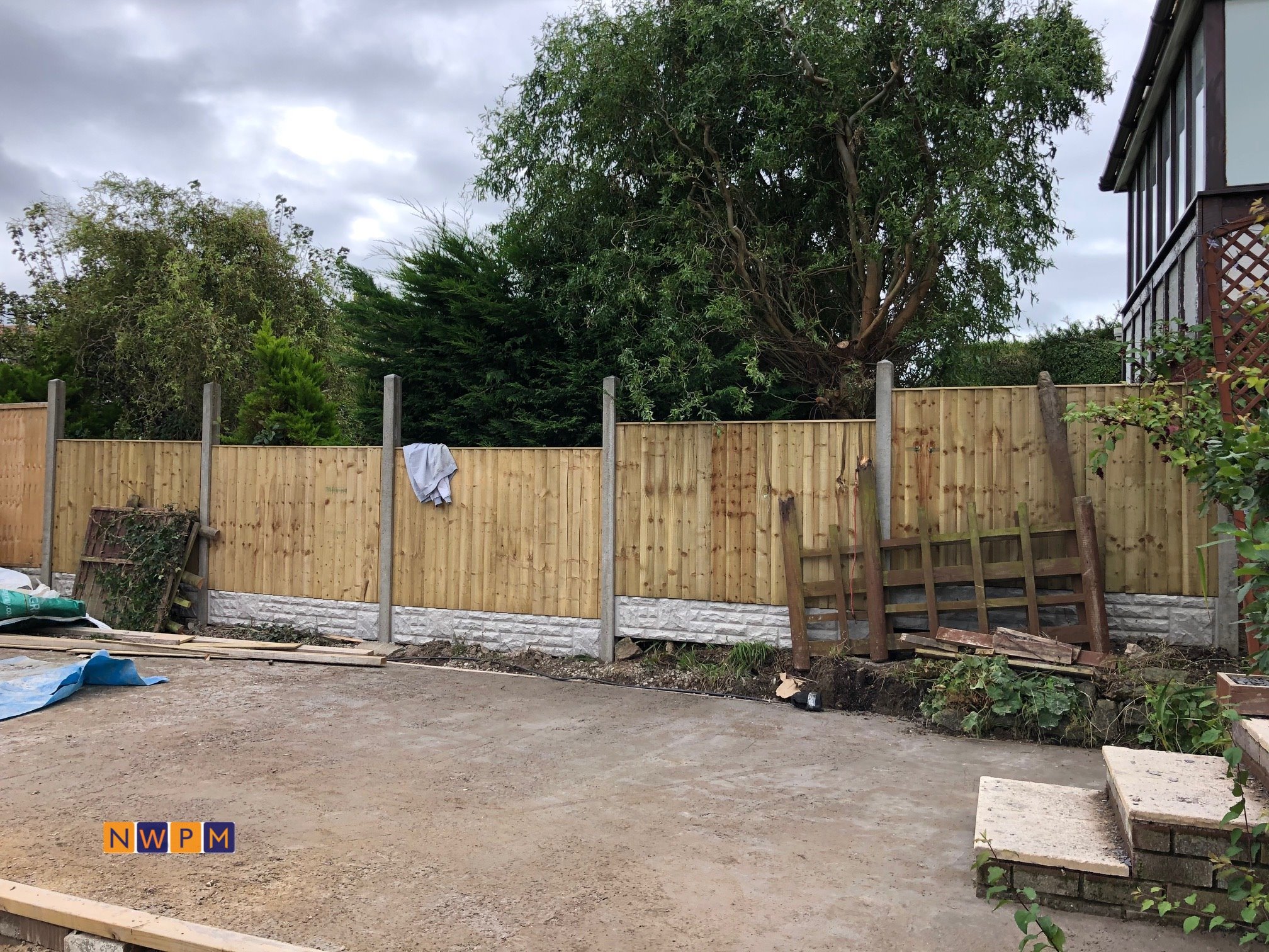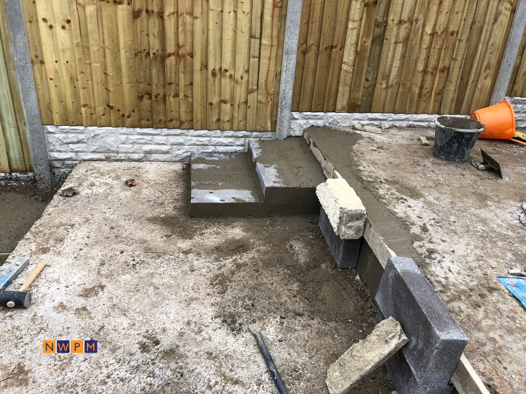 A job that needed everything in Gloucester, Fencing, Patios, Steps, Roof Tiles, Block Wall, Block Paving and Electrics.