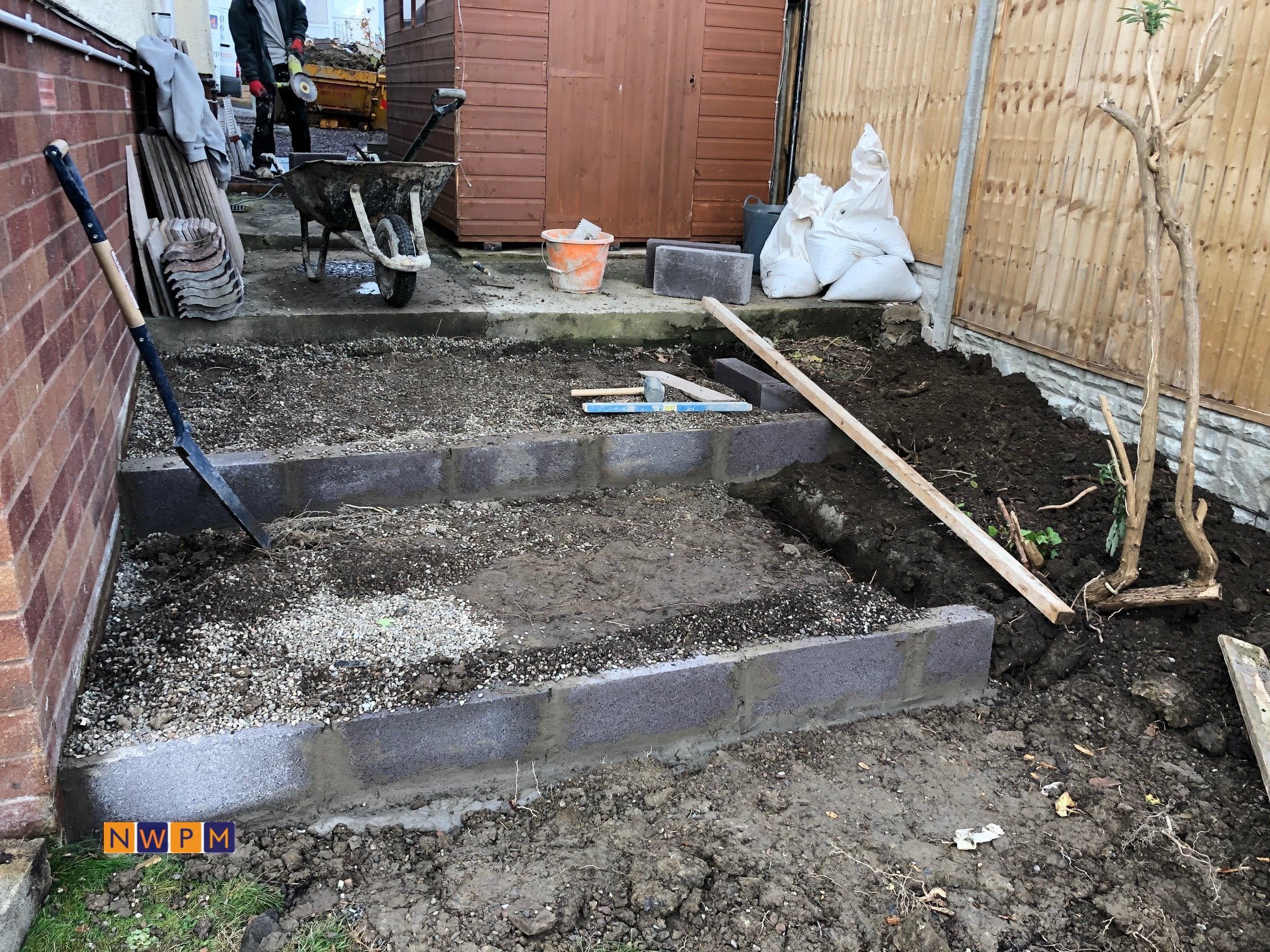 Building the Block Wall and preparing and laying Block Paving in the front garden.